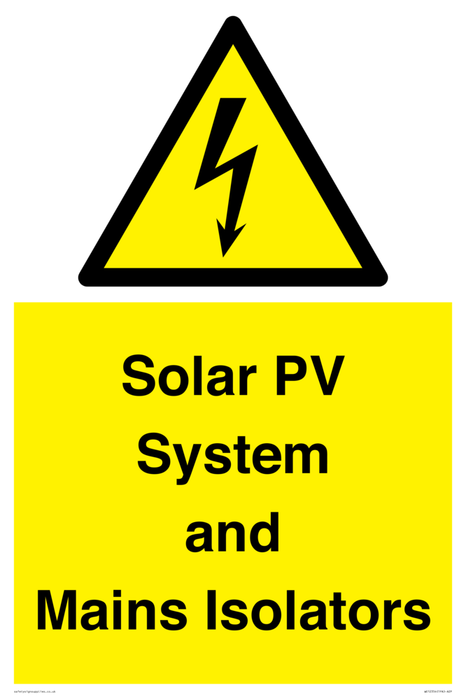 Solar PV System and Mains Isolators Sign
