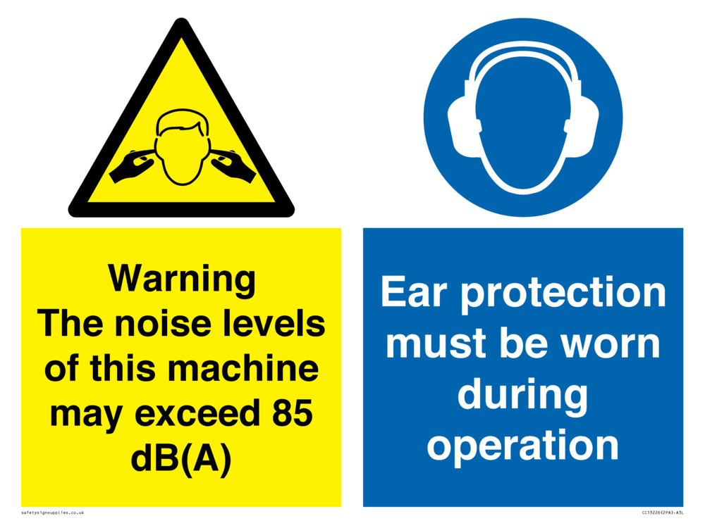 Warning The noise levels of this machine may exceed 85 db(A) Ear Protection must be word during operation Sign