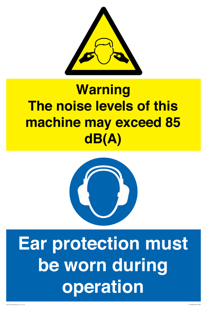 Warning The noise levels of this machine may exceed 85 db(A) Ear Protection must be word during operation Sign