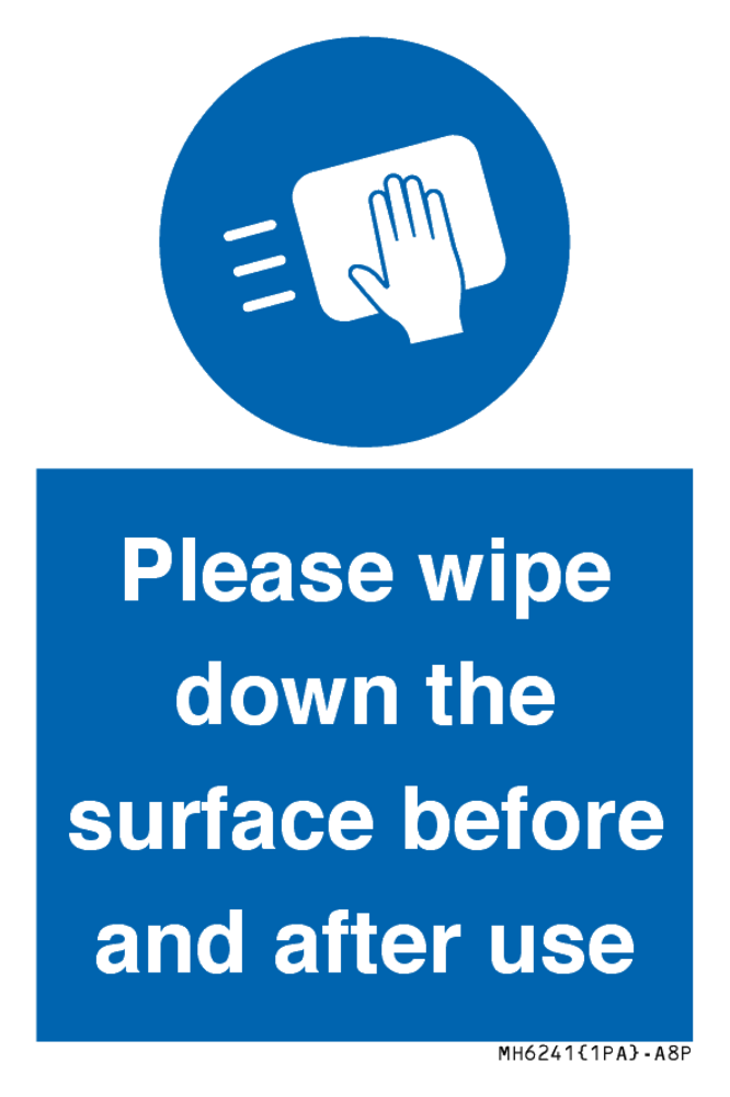 Please wipe down the surface before and after use Sign