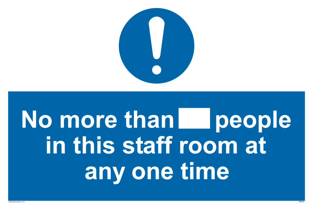 This sign contains a general Mandatory Exclamation Symbol - exclamation mark in white on blue circle background.