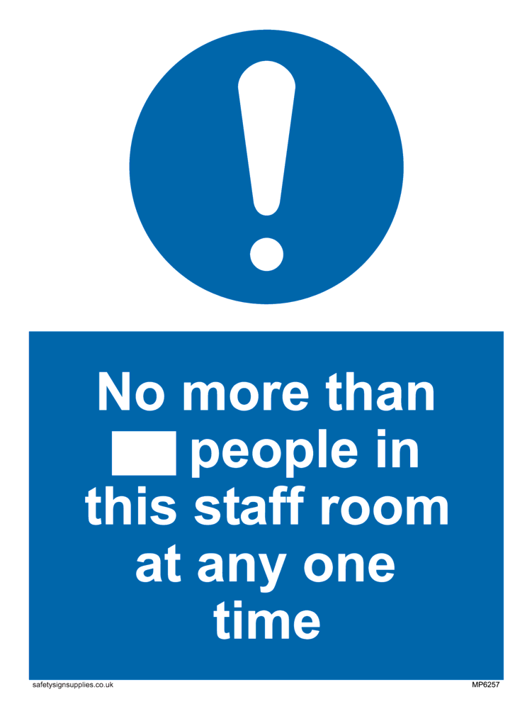 This sign contains a general Mandatory Exclamation Symbol - exclamation mark in white on blue circle background.