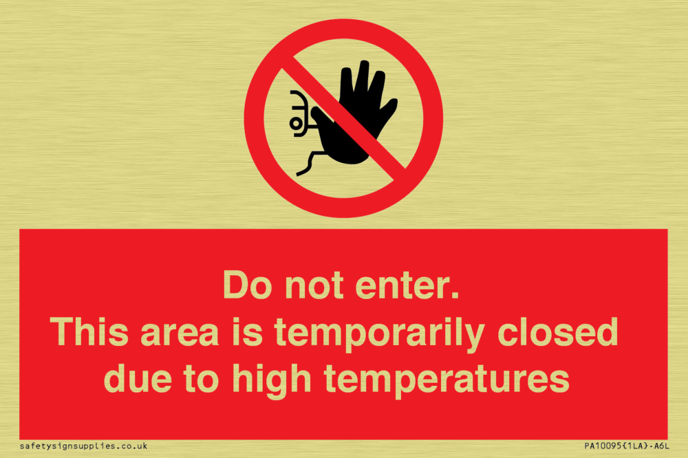 Sign Text: Do not enter. This area is temporarily closed due to high temperatures