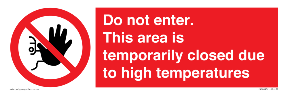 Sign Text: Do not enter. This area is temporarily closed due to high temperatures