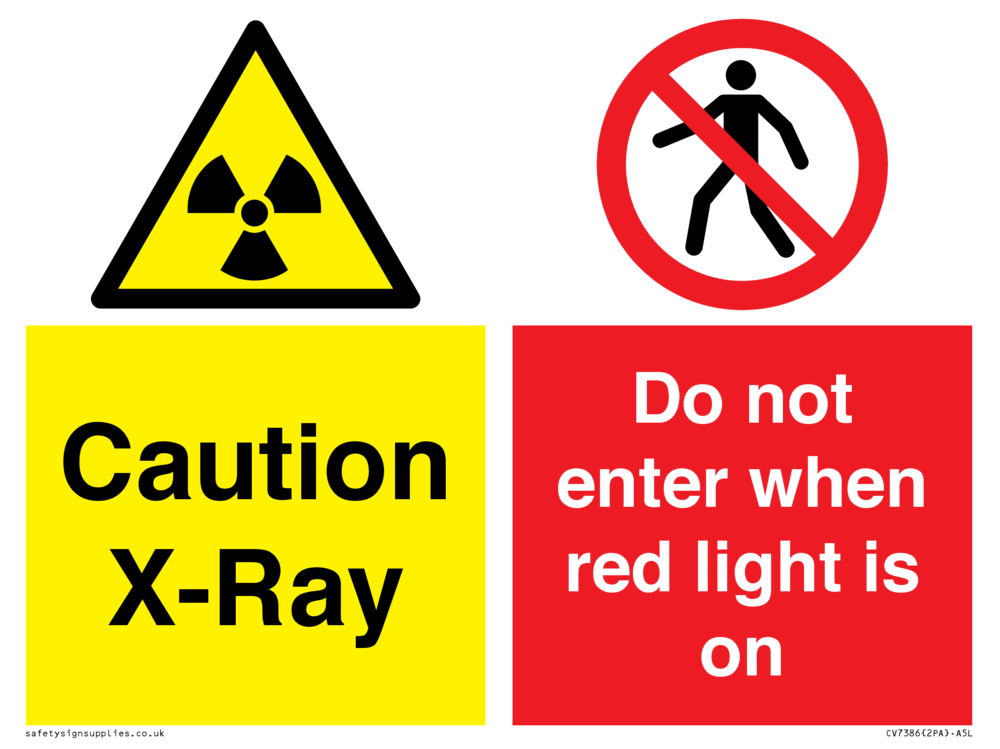 Sign Text: Caution X-Ray. Do not enter when red light is on