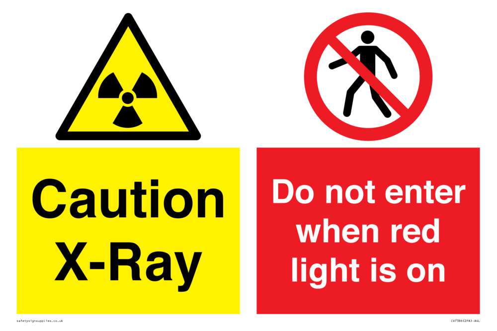 Sign Text: Caution X-Ray. Do not enter when red light is on