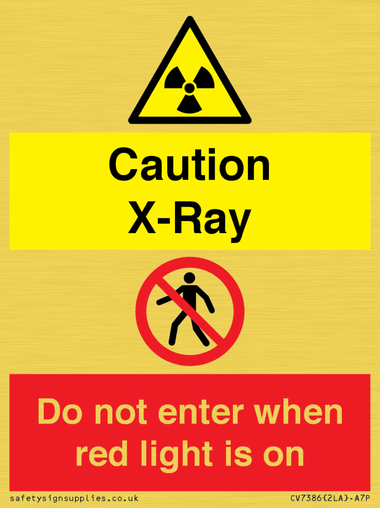 Sign Text: Caution X-Ray. Do not enter when red light is on