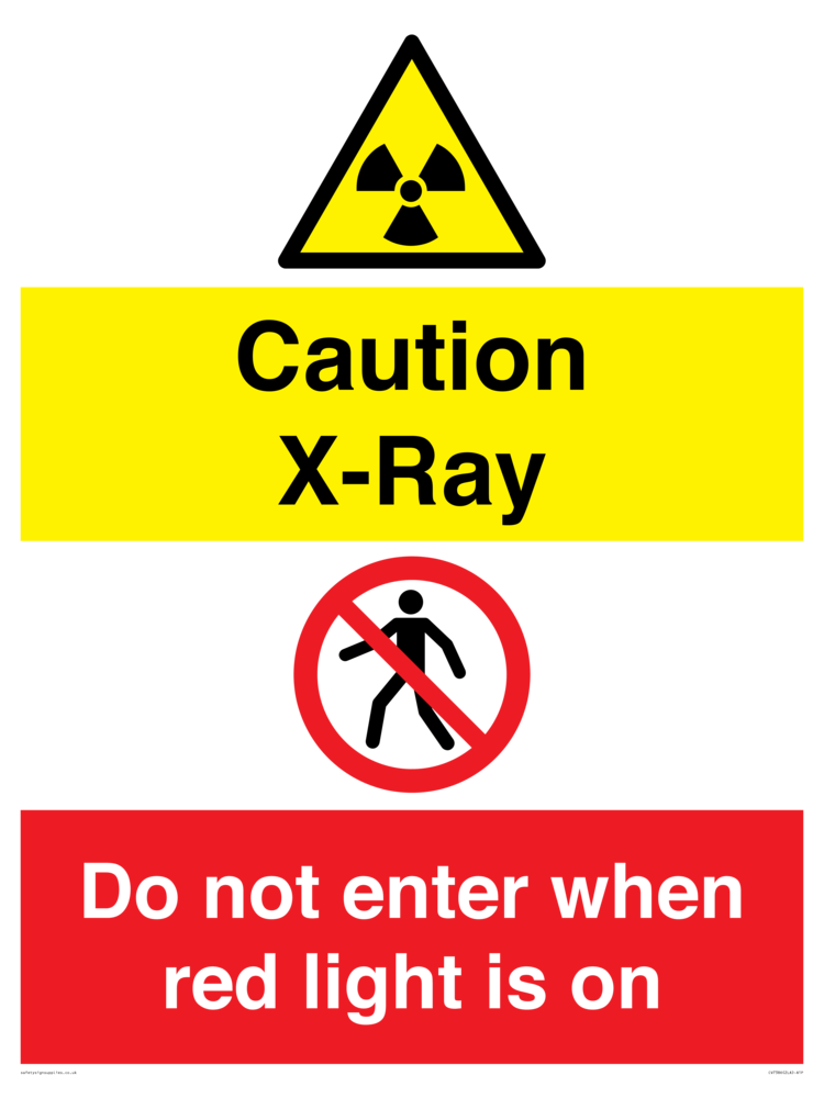 Sign Text: Caution X-Ray. Do not enter when red light is on