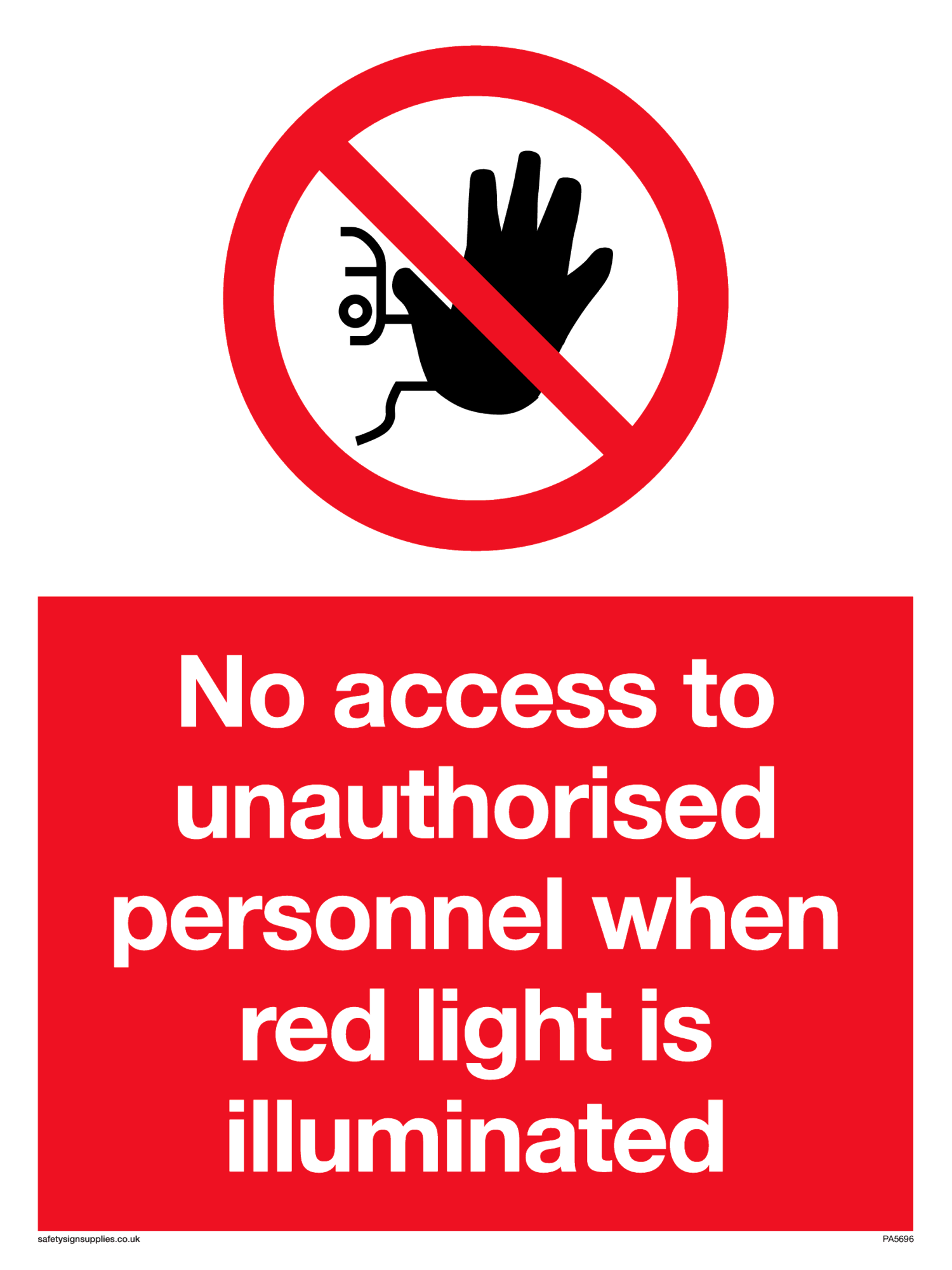 This product is a prohibition safety sign. This type of sign tells you something you must not do.