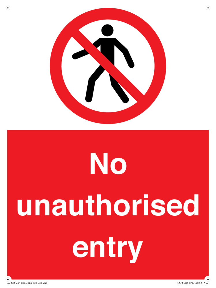 Sign Text: No unauthorised entry