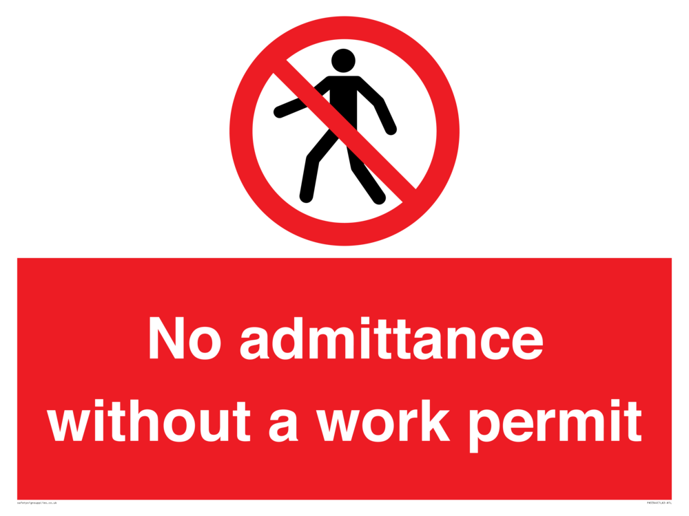 Sign Text: No admittance without a work permit