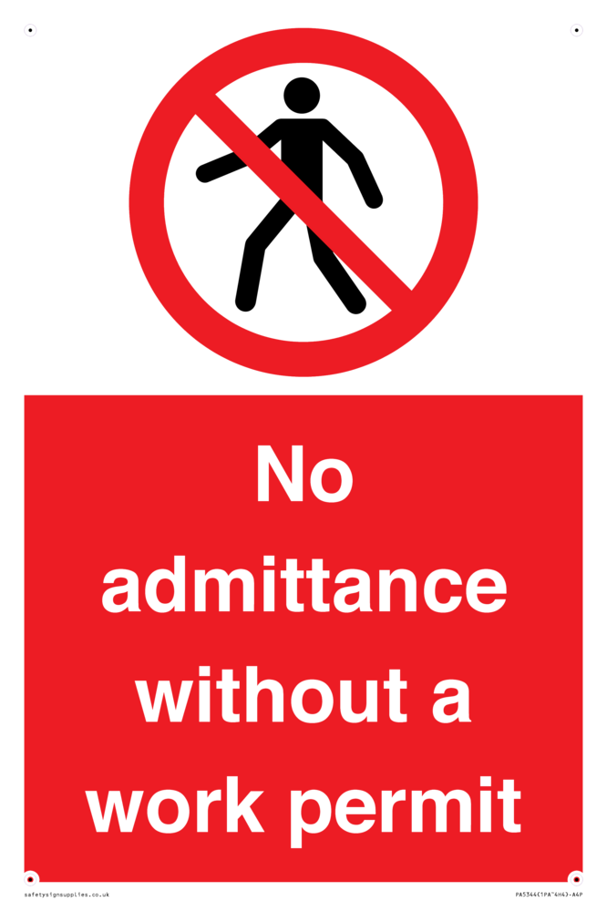 Sign Text: No admittance without a work permit