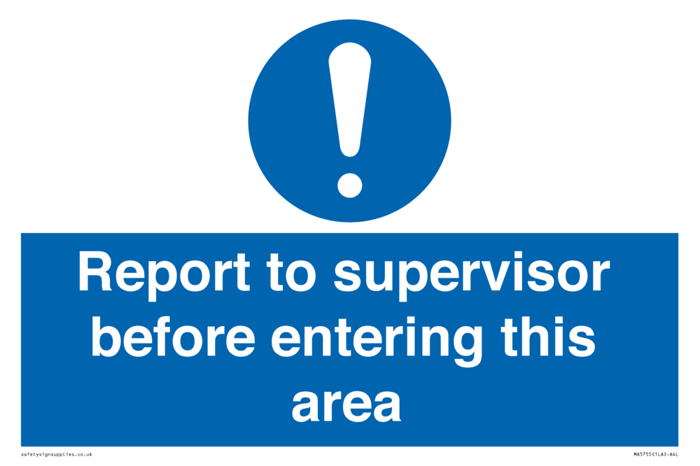 Sign Text: Report to supervisor before entering this area