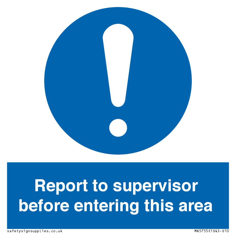 Sign Text: Report to supervisor before entering this area