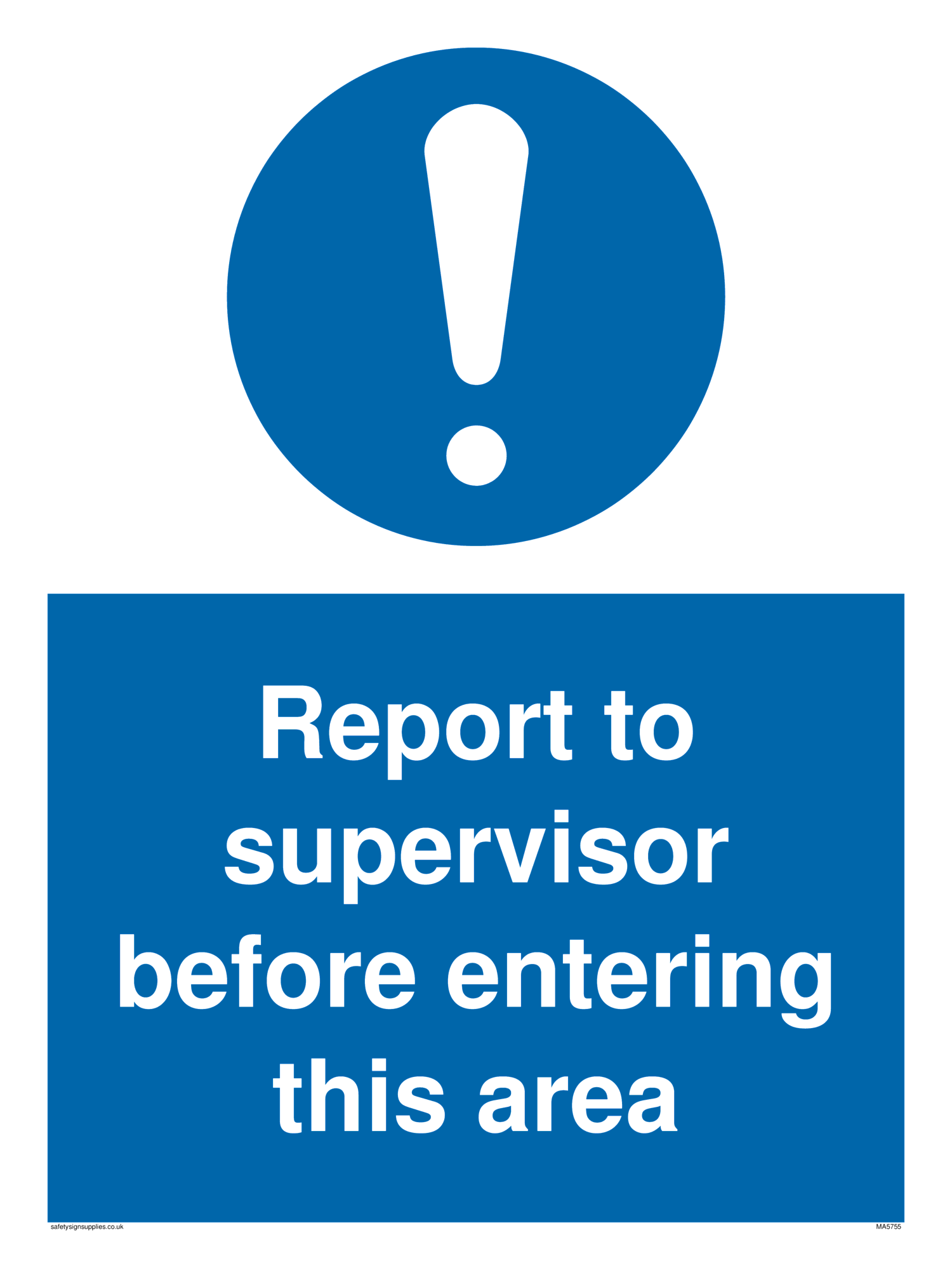 This sign contains a general Mandatory Exclamation Symbol - exclamation mark in white on blue circle background.