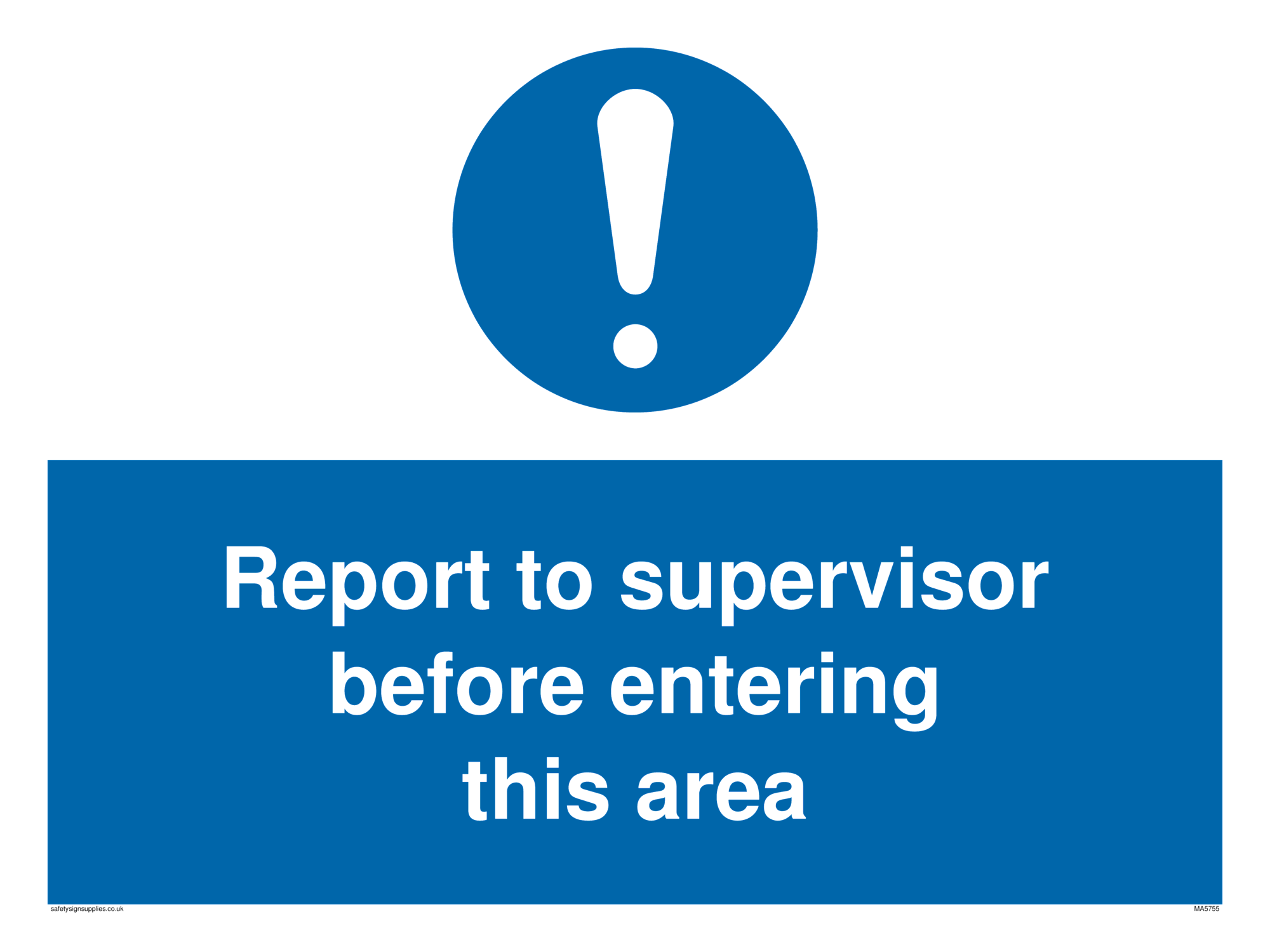 This sign contains a general Mandatory Exclamation Symbol - exclamation mark in white on blue circle background.