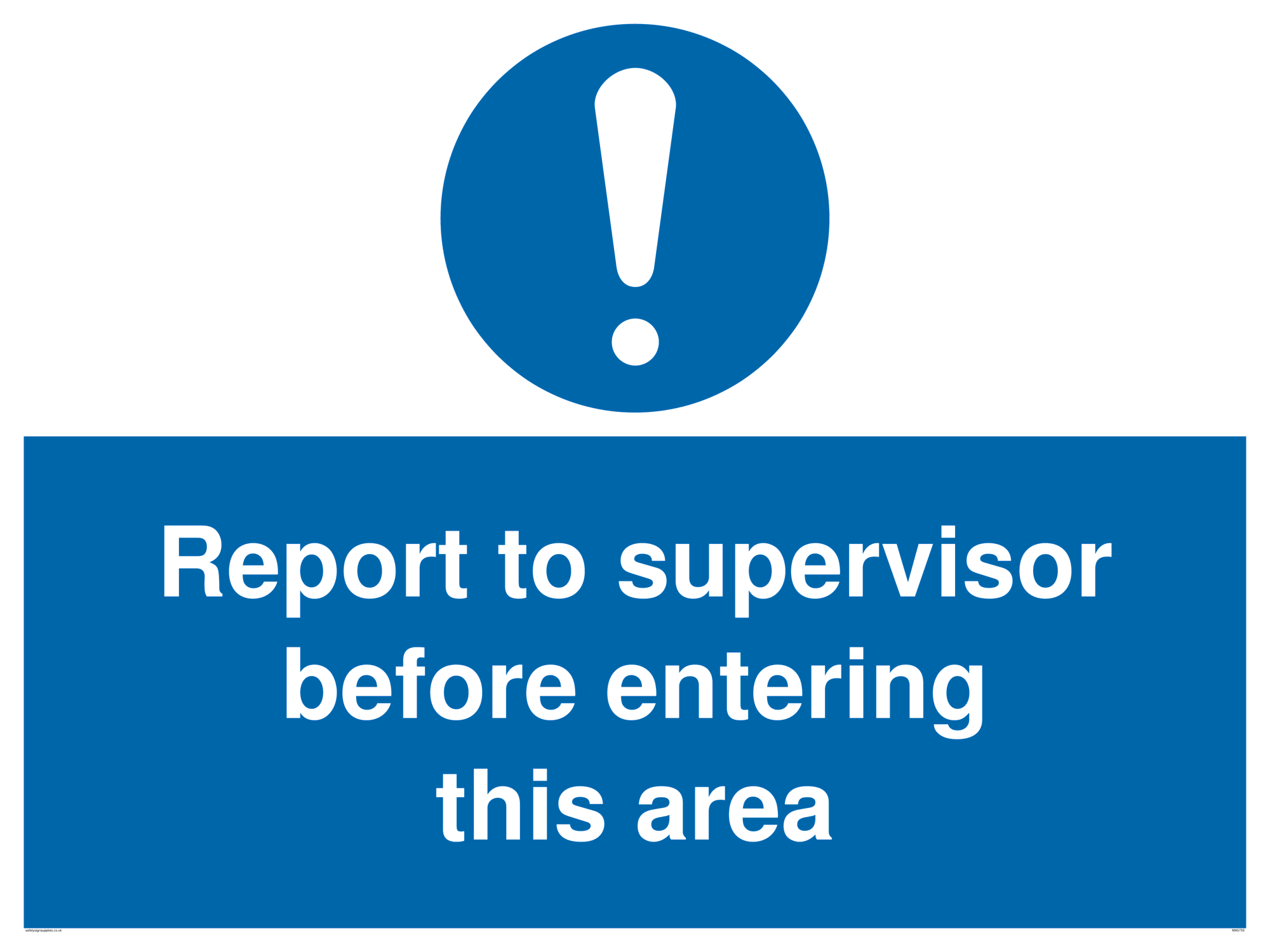 This sign contains a general Mandatory Exclamation Symbol - exclamation mark in white on blue circle background.