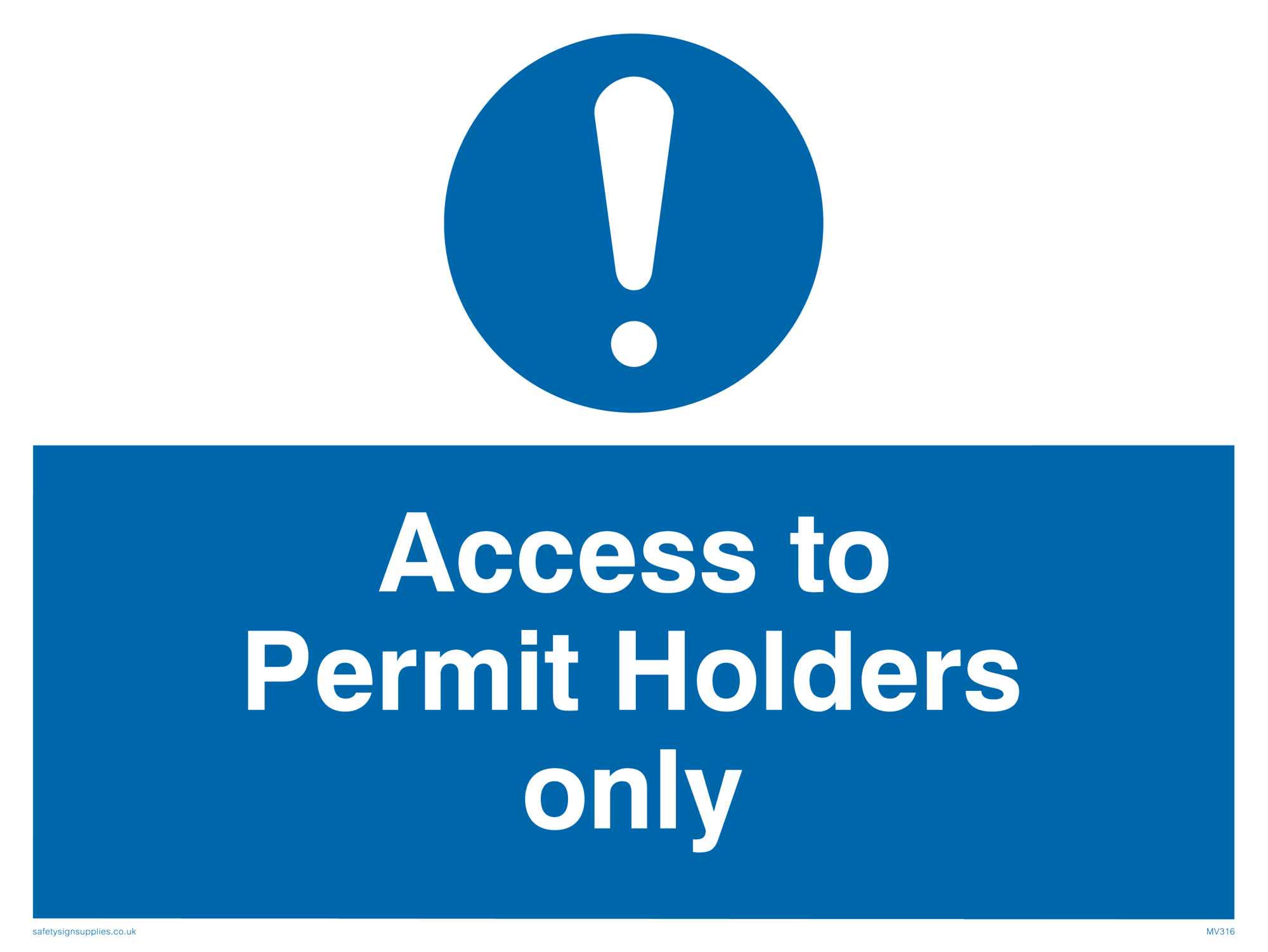 This sign contains a general Mandatory Exclamation Symbol - exclamation mark in white on blue circle background.