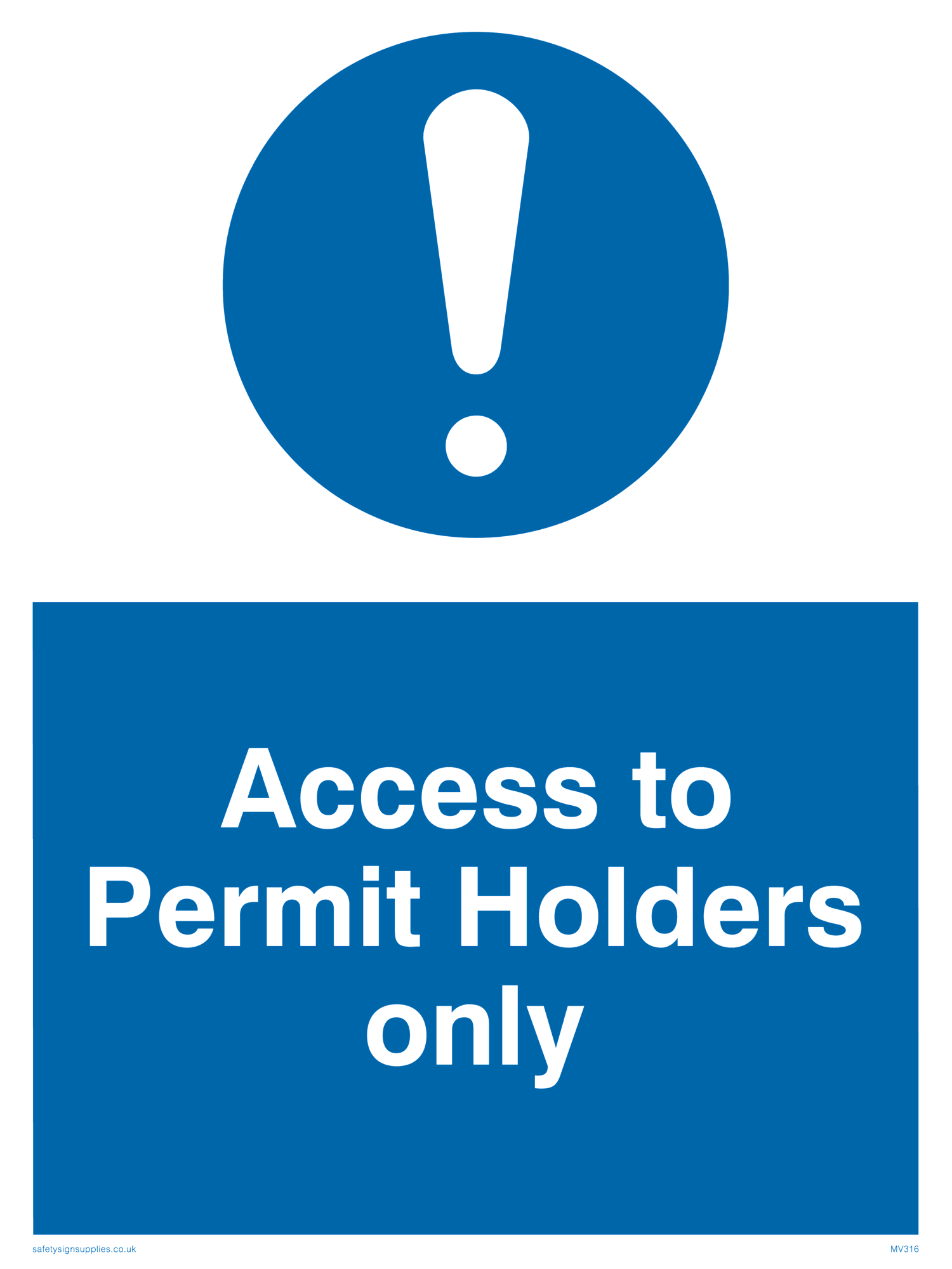 This sign contains a general Mandatory Exclamation Symbol - exclamation mark in white on blue circle background.