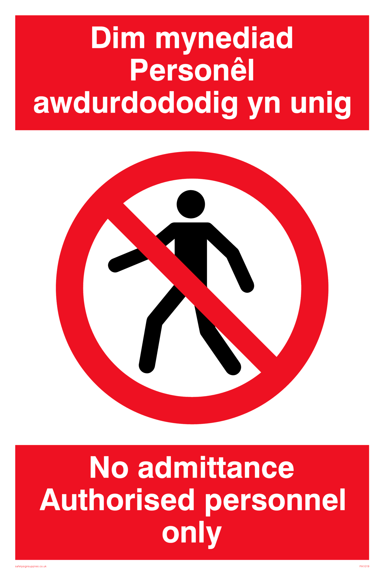 Bi-lingual English / Welsh signs contain text in both English and Welsh. An access sign is used to show when and where access is allowed or not allowed. This sign is medium sized.