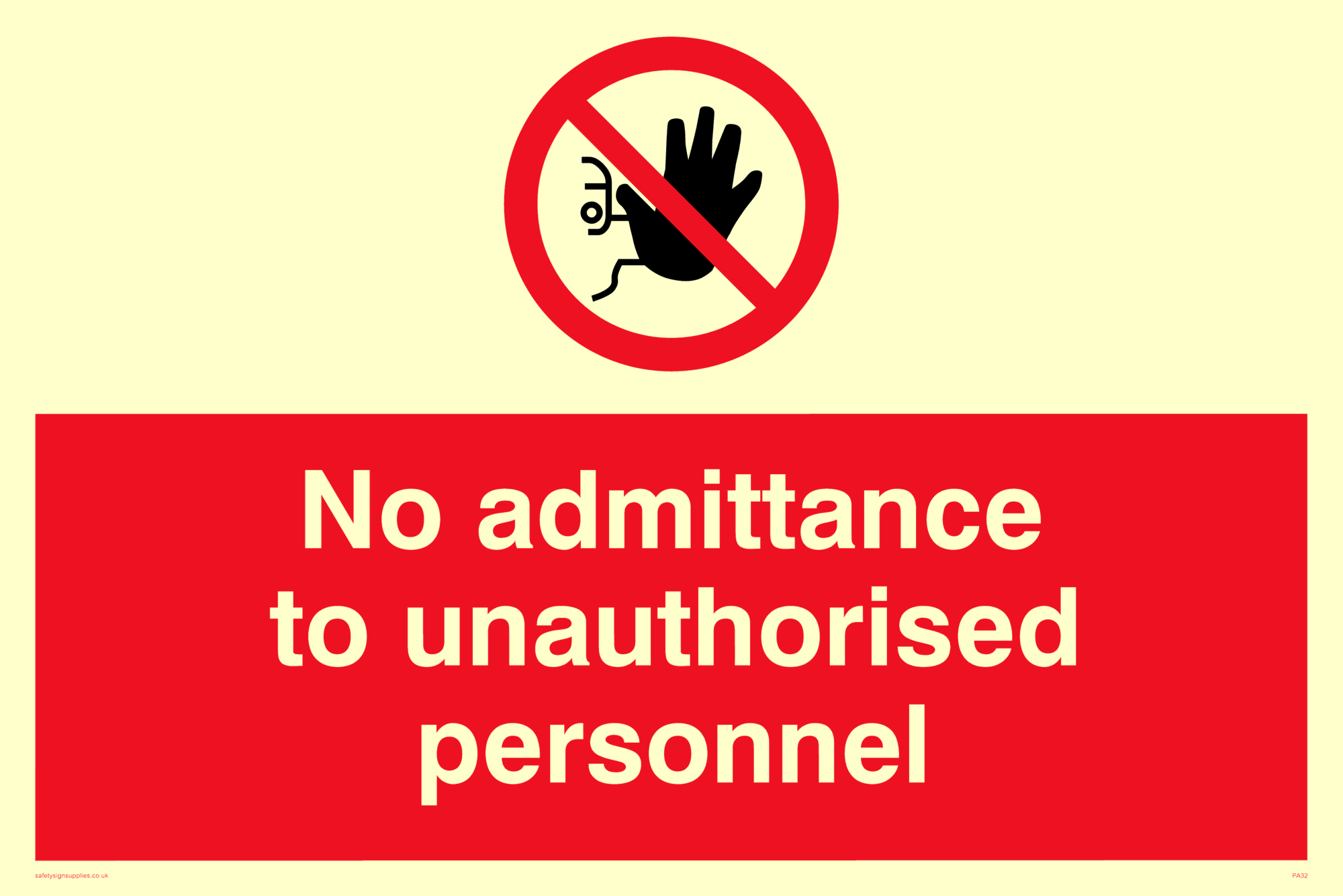 This product is a prohibition safety sign. This type of sign tells you something you must not do.