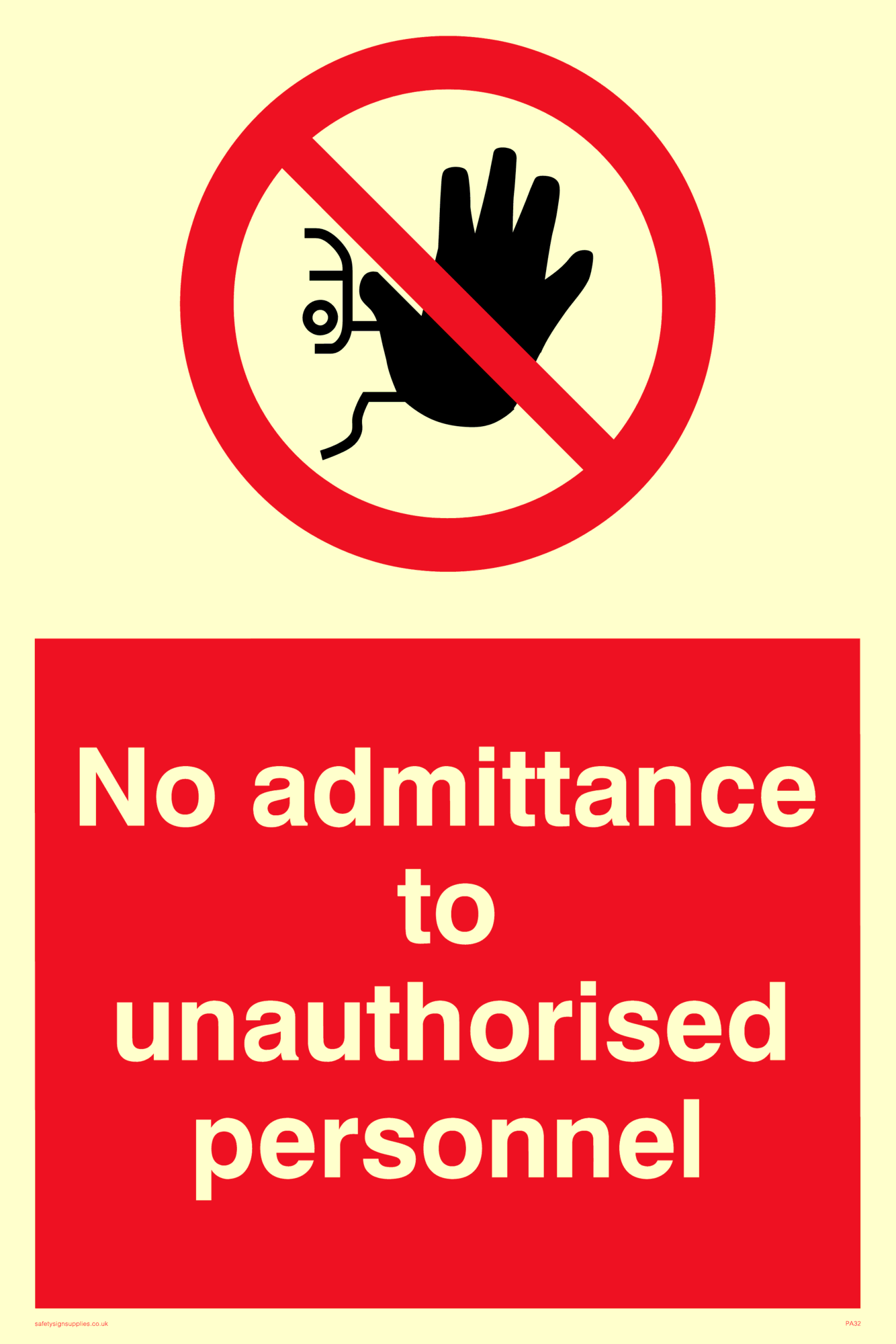 This sign contains a no access symbol - person in black with red circle crossed through.