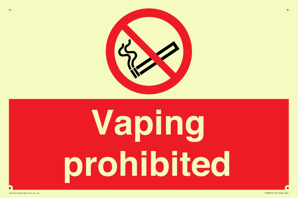 Sign Text: Vaping prohibited e-cigarette no smoking