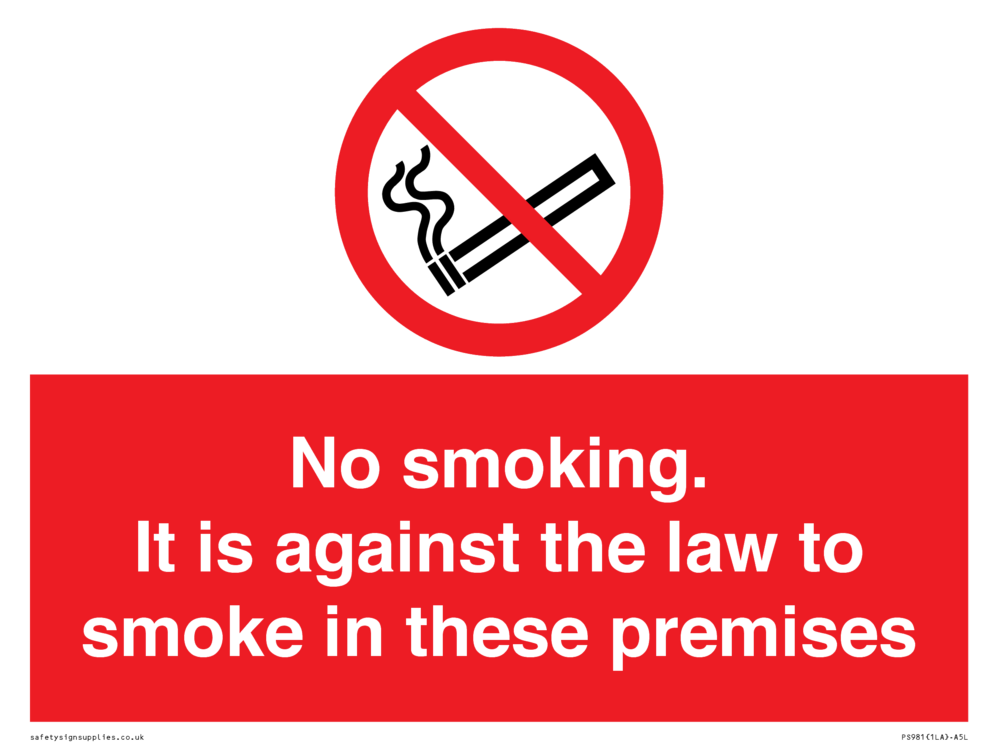 Sign Text: No smoking. It is against the law to smoke in these premises