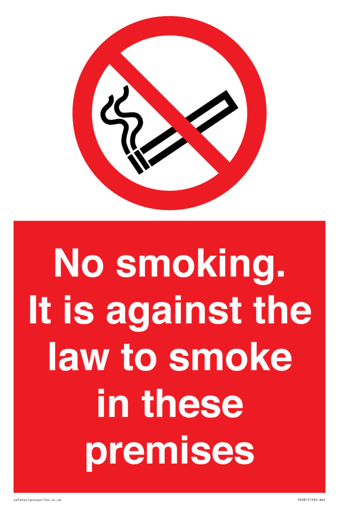 Sign Text: No smoking. It is against the law to smoke in these premises