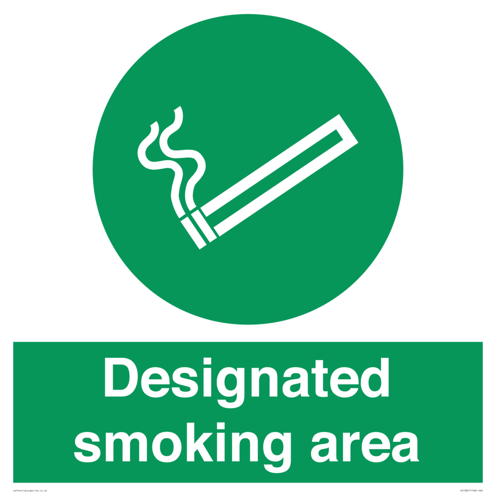 Sign Text: Designated smoking area Dimensions: 600x600mm Material: Aluminum with 2 channels Orientation: Square Text Colour: White Background Colour: Green More...