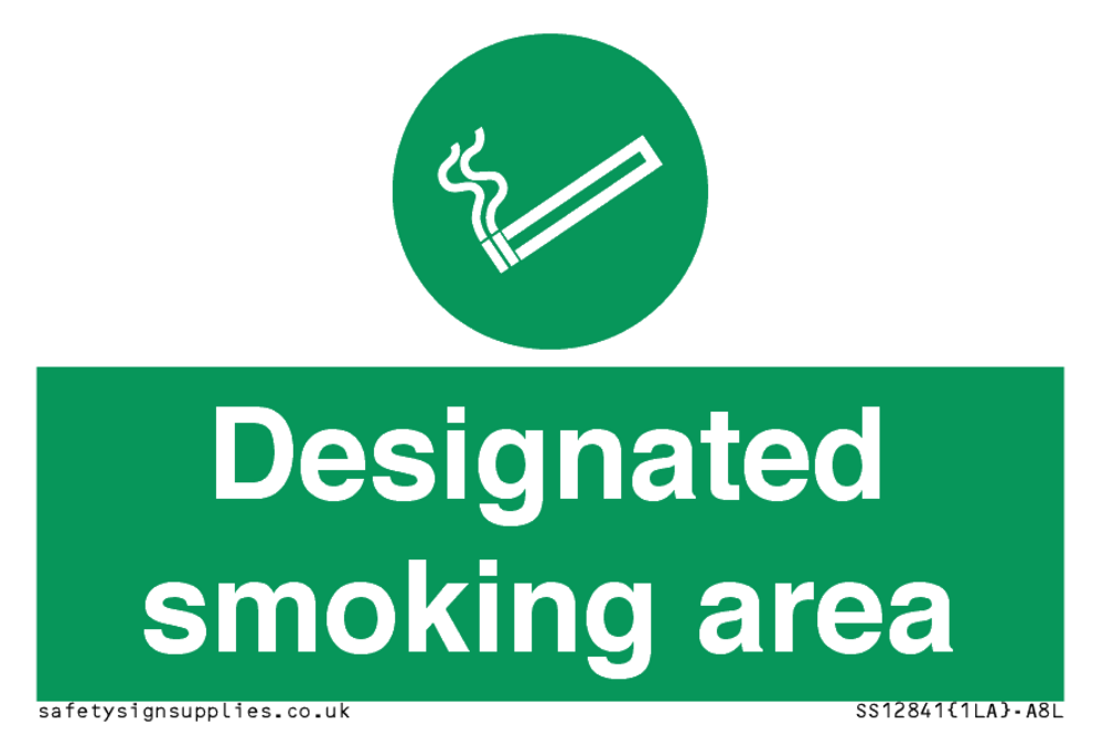 Sign Text: Designated smoking area