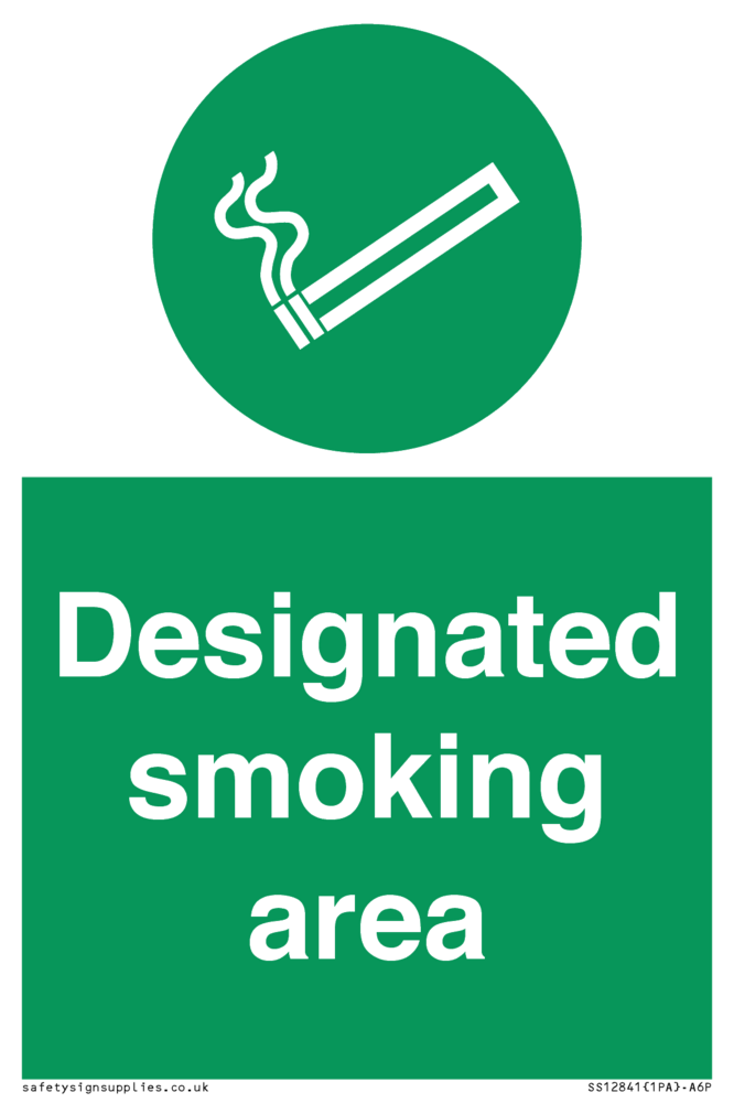 Sign Text: Designated smoking area