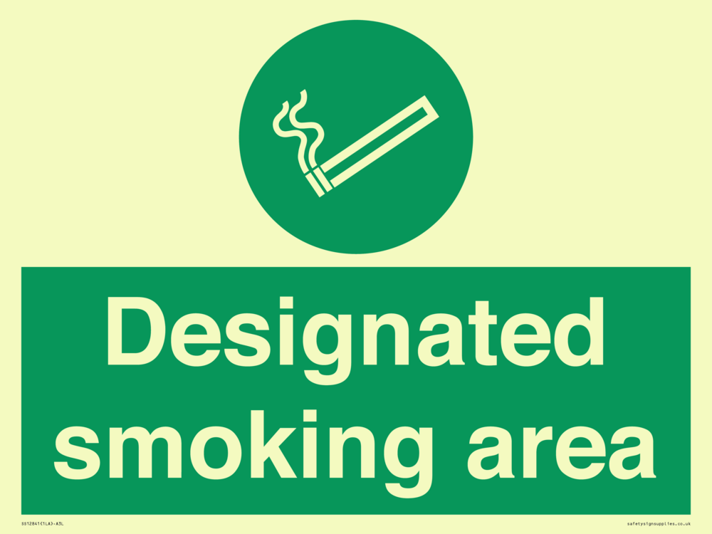 Sign Text: Designated smoking area