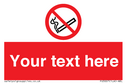 This sign contains a no smoking symbol - cigarette and smoke in black with red prohibition circle and line diagonally crossed through.