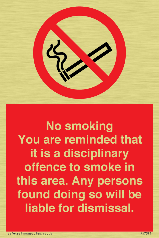 This sign contains a no smoking symbol - cigarette and smoke in black with red prohibition circle and line diagonally crossed through.