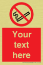 This sign contains a no smoking symbol - cigarette and smoke in black with red prohibition circle and line diagonally crossed through.
