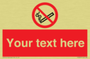 This sign contains a no smoking symbol - cigarette and smoke in black with red prohibition circle and line diagonally crossed through.