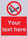 This sign contains a no smoking symbol - cigarette and smoke in black with red prohibition circle and line diagonally crossed through.