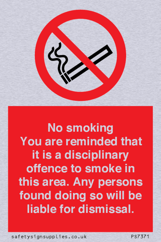 This sign contains a no smoking symbol - cigarette and smoke in black with red prohibition circle and line diagonally crossed through.