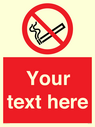 This sign contains a no smoking symbol - cigarette and smoke in black with red prohibition circle and line diagonally crossed through.