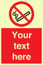 This sign contains a no smoking symbol - cigarette and smoke in black with red prohibition circle and line diagonally crossed through.