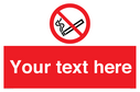 This sign contains a no smoking symbol - cigarette and smoke in black with red prohibition circle and line diagonally crossed through.