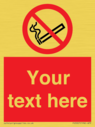 This sign contains a no smoking symbol - cigarette and smoke in black with red prohibition circle and line diagonally crossed through.
