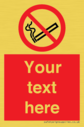 This sign contains a no smoking symbol - cigarette and smoke in black with red prohibition circle and line diagonally crossed through.