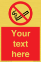 This sign contains a no smoking symbol - cigarette and smoke in black with red prohibition circle and line diagonally crossed through.