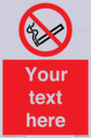 This sign contains a no smoking symbol - cigarette and smoke in black with red prohibition circle and line diagonally crossed through.