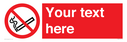 This sign contains a no smoking symbol - cigarette and smoke in black with red prohibition circle and line diagonally crossed through.