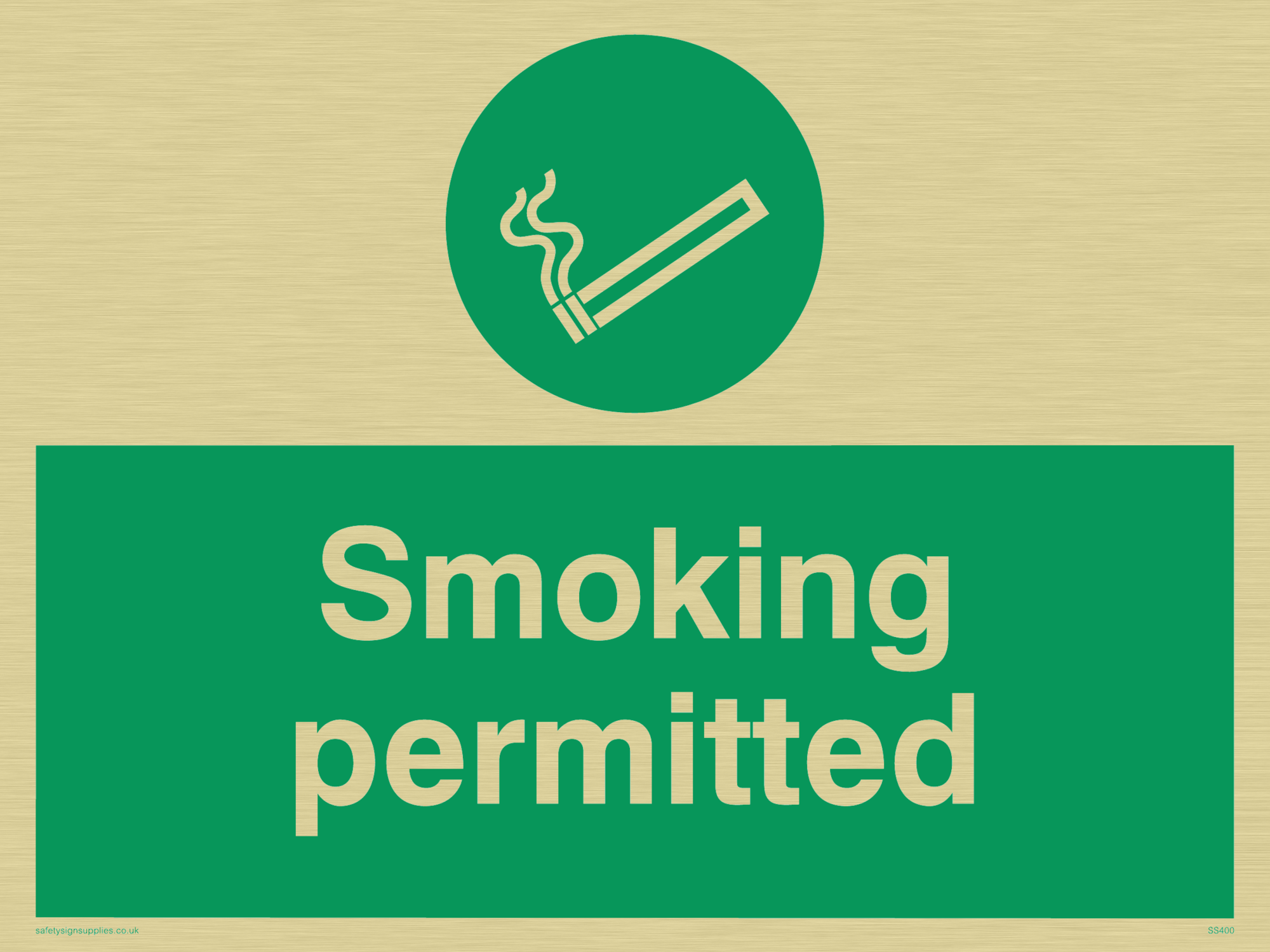 This sign contains a smoking permitted symbol - cigarette in white on green background.