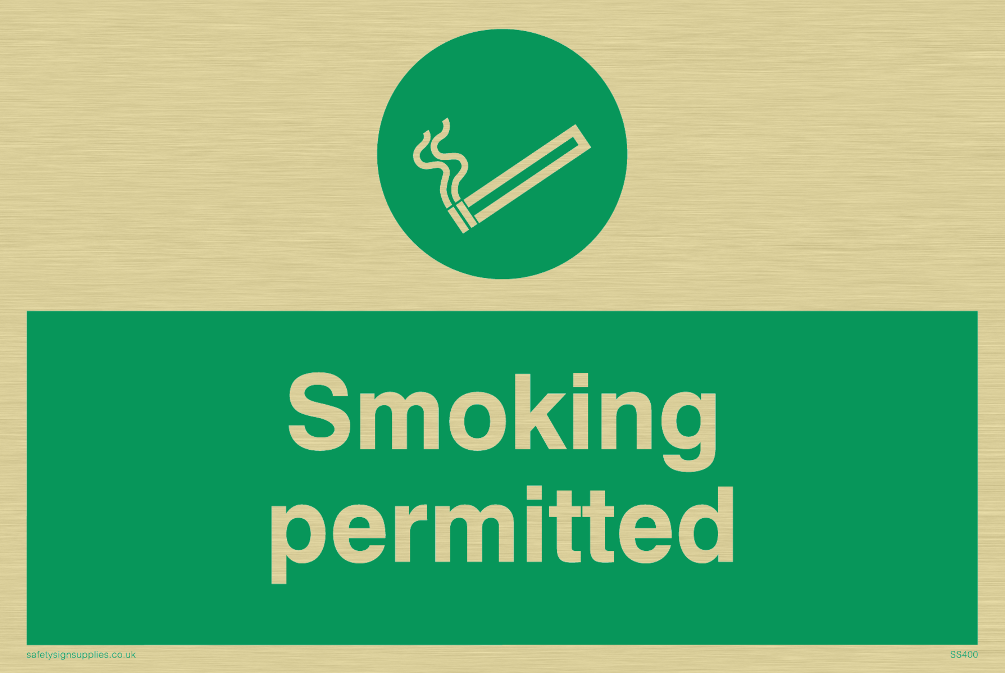 This sign contains a smoking permitted symbol - cigarette in white on green background.