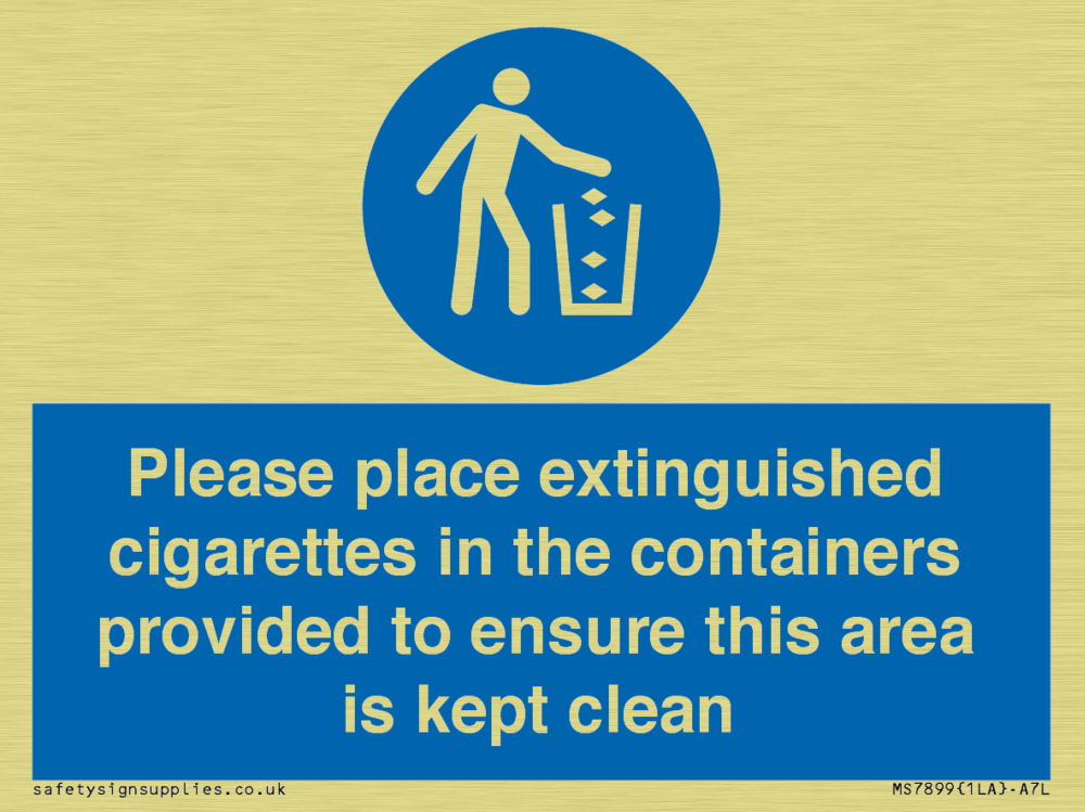 Sign Text: Please place extinguished cigarettes in the containers provided to ensure this area is kept clean